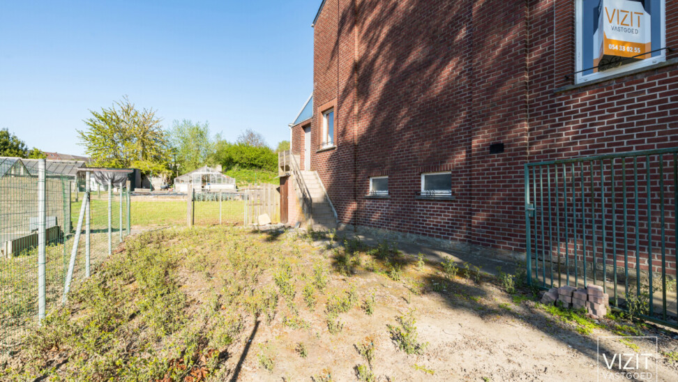 De tuin bevindt zich aan de linkerzijde van de woning en biedt een aangename buitenruimte.