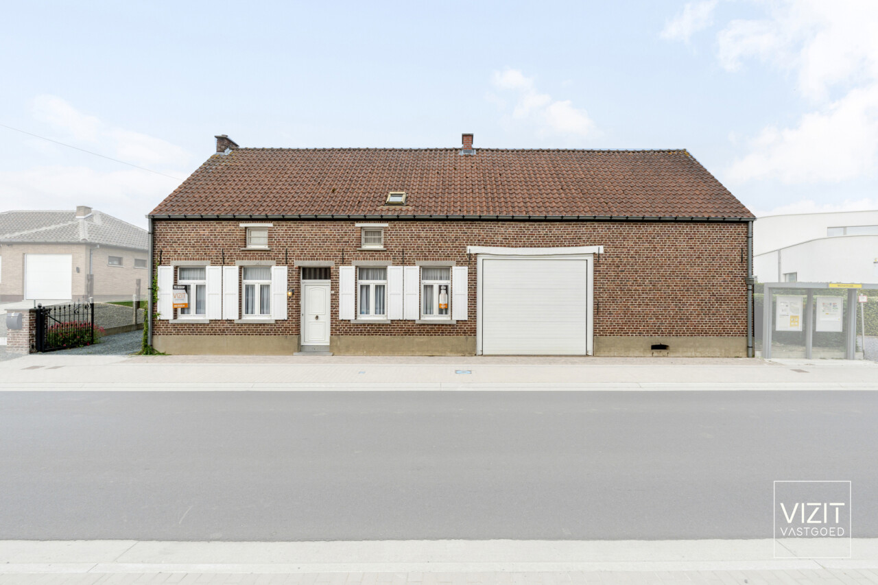 Op een perceel van 8a 2ca bevindt zich deze charmante, 19de-eeuwse boerderijwoning. Het gelijkvloers omvat een inkomhal, woonkamer en eetkamer, badkamer, keuken, ruime garage met automatische poort, wasplaats en een berging. Op de eerste verdieping vindt u een nachthal, drie slaapkamers, een berging en een bureau. Verder is er een kelder en een omheinde tuin met bijgebouw rond de gezellige binnenkoer.