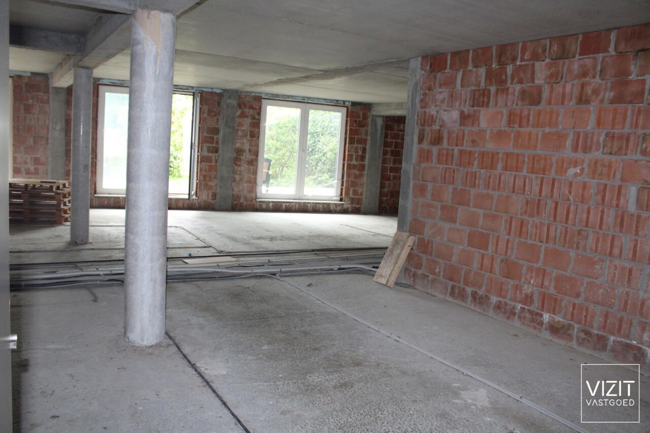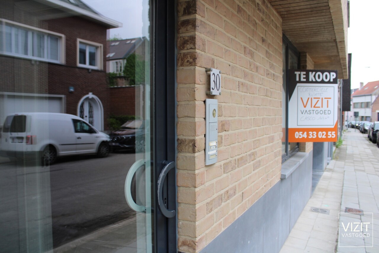 Casco handelspand van 104m² commerciële ruimte met groot terras op het gelijkvloers en parkingplaatsen ondergronds (optioneel). Uitermate geschikt voor vrije beroepen.