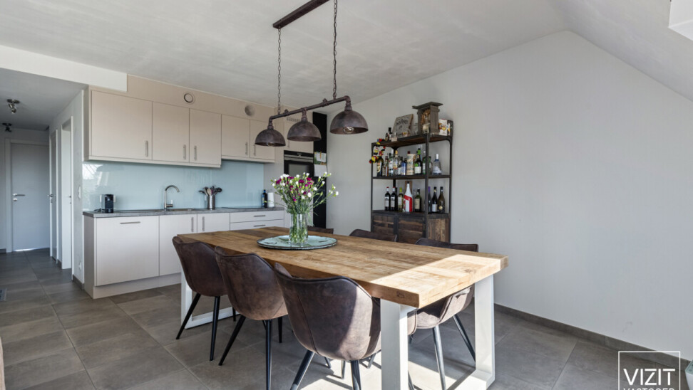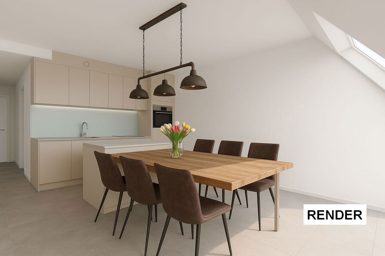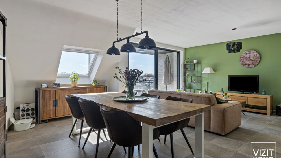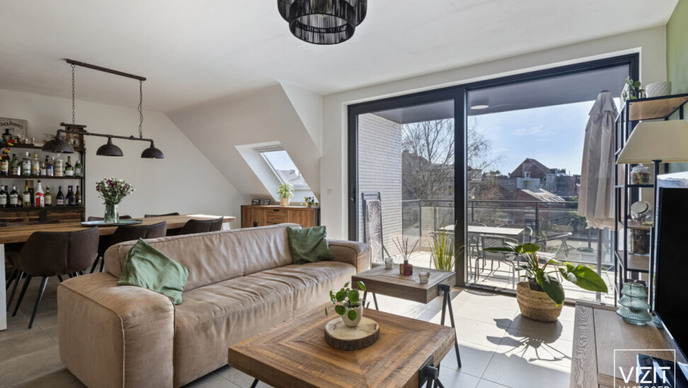 Residentie Beau, gebouwd in 2020, biedt een ruim en energiezuinig duplexappartement met een bruto oppervlakte van 145 m² en een netto oppervlakte van ongeveer 123 m². De derde verdieping omvat een ruime, lichtrijke leefruimte met open keuken, en een zuidgericht terras van 8 m². Daarnaast is er een slaapkamer, badkamer, apart gastentoilet en berging op het zelfde niveau. Op de vierde verdieping bevinden zich twee slaapkamers, ruime nachthal en een tweede badkamer. Het appartement beschikt over vloerverwarming, zes zonnepanelen, ventilatiesysteem D, en voorbereide leidingen voor airconditioning. De garage is niet inbegrepen in de vermelde prijs en dient verplicht bijgekocht te worden aan 30.000 euro. Gelegen op wandelafstand van winkels, openbaar vervoer en recreatiemogelijkheden, combineert dit appartement rust met een centrale ligging. Verkoop onder registratierechten.