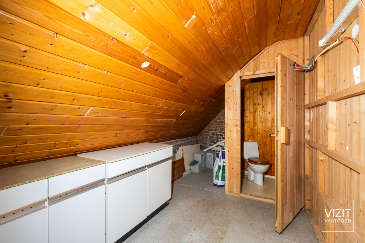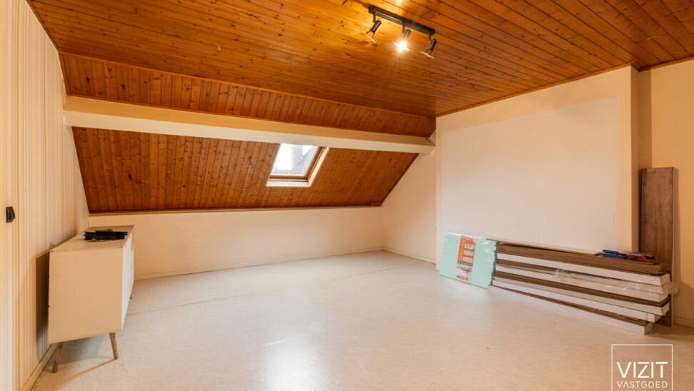 Op het gelijkvloers beschikt de woning over een aangename woonkamer van 27 m², een ruime berging van 11 m², een badkamer en een keuken van 13 m². De indeling is functioneel en biedt een goede basis om de ruimtes verder naar eigen smaak in te richten.