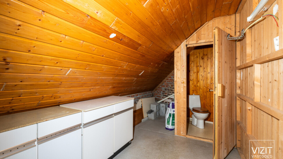 De eerste verdieping omvat twee slaapkamers, aangevuld met twee compacte zolderruimtes die perfect dienst kunnen doen als bergruimte, dressing of hobbyhoek, evenals een apart toilet.