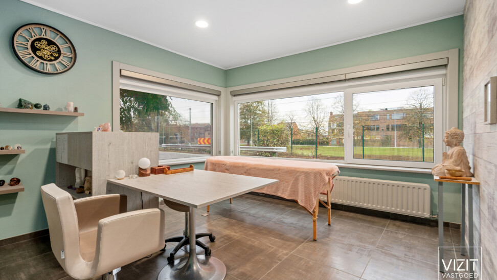 In een bijzonder rustige woonwijk, op wandelafstand van station, scholen en winkels, bevindt zich deze charmante hoekwoning met veel potentieel. Op het gelijkvloers vindt u een inkomhal met toegang tot de woonkamer en een aparte ruimte die ideaal is voor een zelfstandige activiteit (voorheen kapsalon), een toilet, een gezellige woonkamer met open keuken (gerenoveerd in 2019) en een wasplaats/berging.