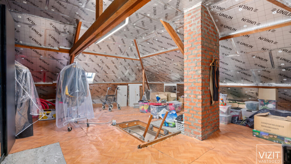 De eerste verdieping omvat een nachthal, drie slaapkamers en een badkamer; deze verdieping dient nog verder afgewerkt te worden.