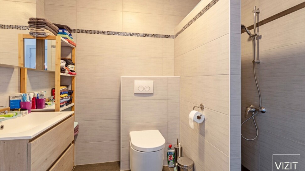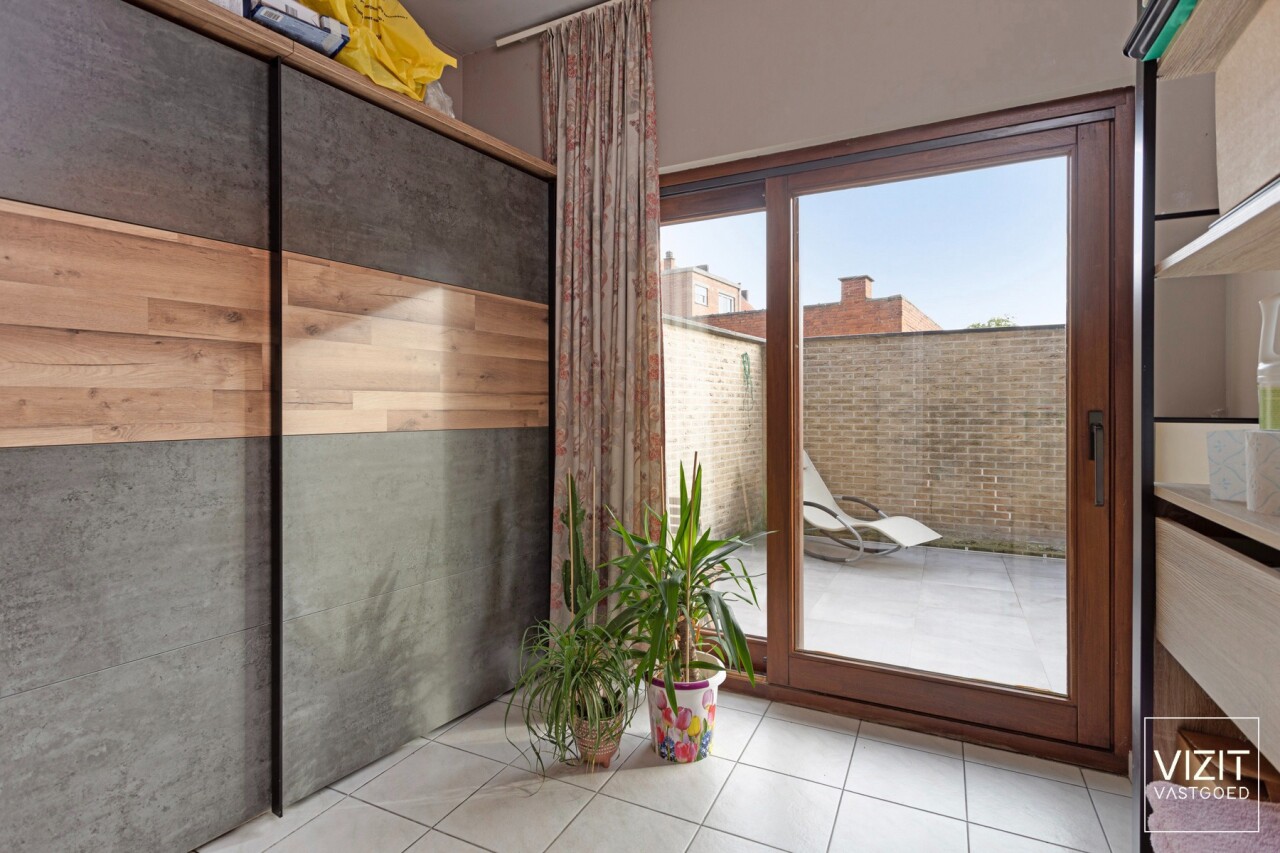 Indeling: inkomhal, lichtrijke woonkamer, recente keuken, nachthal, moderne badkamer, berging, twee slaapkamers en een ruim terras van 27 m² met tuinhuisje voor extra opslag (vuilniszakken en kuismateriaal). Inclusief raamdecoratie. Gemeenschappelijke lasten: € 50 (forfait). Beschikbaar vanaf 01/03/2026.