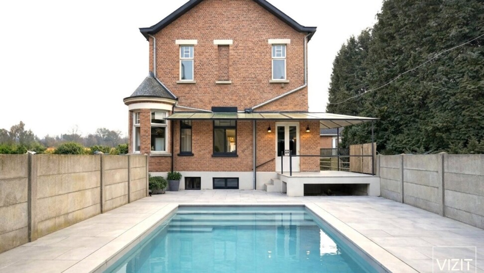 De bewoonbare oppervlakte bedraagt 340 m² met een totale bruikbare oppervlakte van 615 m². De woning is volledig onderkelderd en beschikt over een dubbele garage. Buiten zijn er een afgewerkt poolhouse, een zwembad en een magazijn van 80 m² dat kan dienen als werkplaats of extra garage.