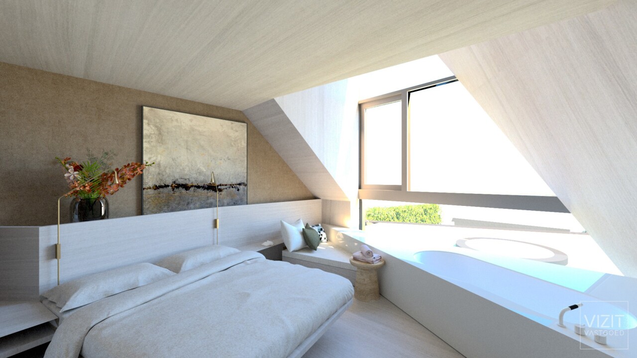 Op de eerste verdieping: een royale nachthal met mogelijkheden als bureau of speelruimte, twee slaapkamers, apart toilet en een badkamer. De tweede verdieping is een volwaardige master suite met ruimte voor dressing, badkamer en een mezzanine/zolderkamer als extra hobby-, werk- of logeerkamer.