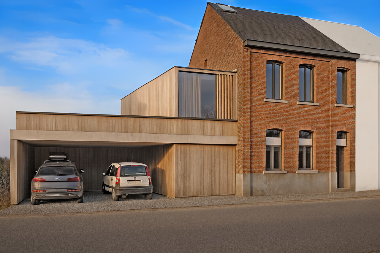 De tuin met terras en de voorziene carport voor twee wagens maken het plaatje compleet. Er zijn gedetailleerde plannen en renders beschikbaar. EPC: 496 – een nieuw attest volgt na voltooiing van de resterende werken.