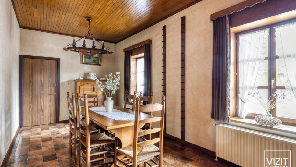 Te renoveren woonhuis (200 m²) met bijgebouwen (86 m²) en stallingen, ideaal voor wie wonen en werken wil combineren. De woning beschikt over een kelder, leefruimte, keuken en een ruime garage. Op de eerste verdieping bevinden zich twee slaapkamers, een badkamer en een nog in te richten zolderruimte, met daarboven een extra (berg)zolder. Achteraan ligt een bijgebouw van 2 x 43 m², waar vroeger een bakkerij was gevestigd, samen met diverse stallingen, een overdekte koer en een apart toilet. De woning wordt verwarmd met centrale verwarming op gas en deels houtkachels. De ramen zijn voornamelijk houten schrijnwerk met dubbele beglazing. Deze eigendom biedt veel potentieel voor zelfstandige activiteit of uitbreiding, en is geschikt voor wie op zoek is naar ruimte en mogelijkheden.