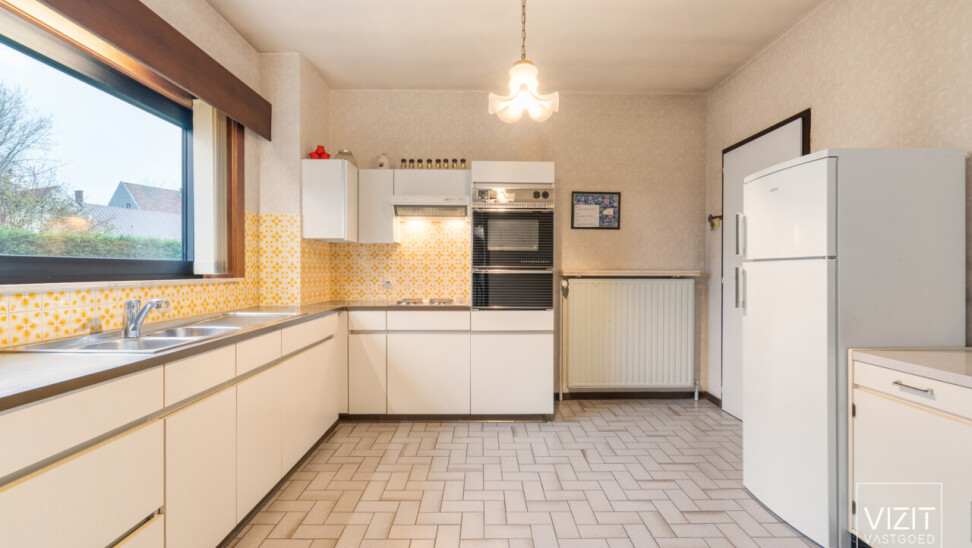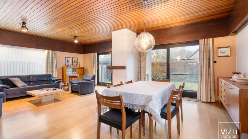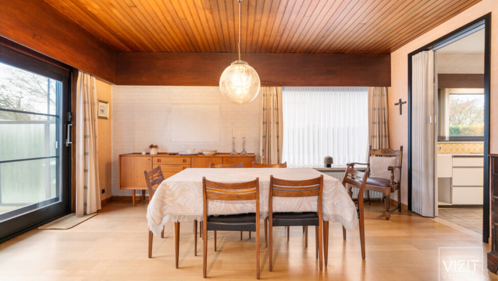 In een bijzonder rustige en residentiële wijk, nabij het centrum van Ninove, bevindt zich deze architecturale open bebouwing met karaktervolle uitstraling. Op het gelijkvloers vindt u een inkomhal met gastentoilet, een ruime woon- en eetkamer met open haard, een keuken en een inpandige garage met wasplaats.