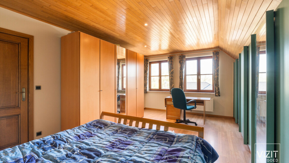 De verdieping omvat vier volwaardige slaapkamers, waaronder twee bijzonder ruime kamers, een badkamer, douchekamer en een apart toilet.